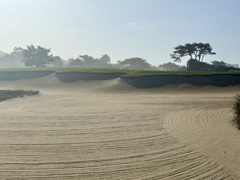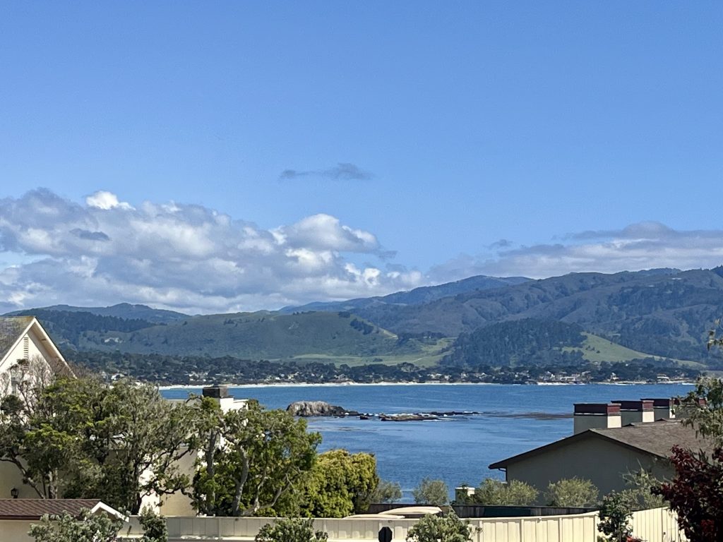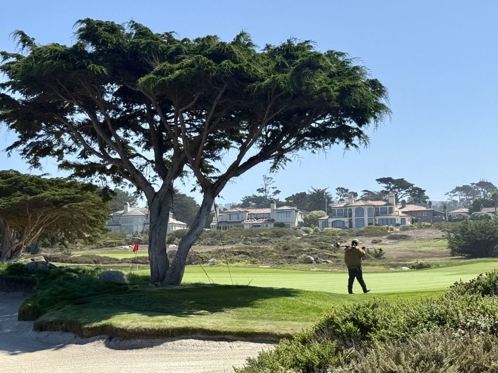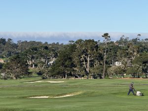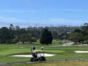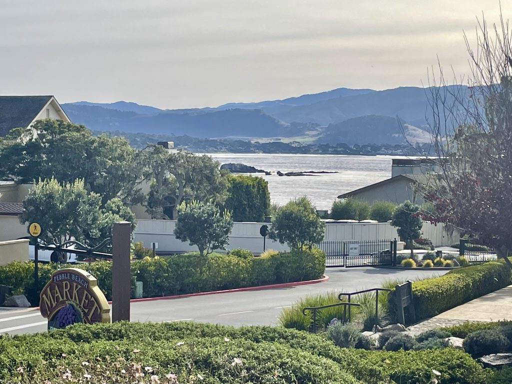 Nearing the front entrance of the resort, guests turn down a long driveway to check in, and the rest of us get great golf and Carmel Bay views.