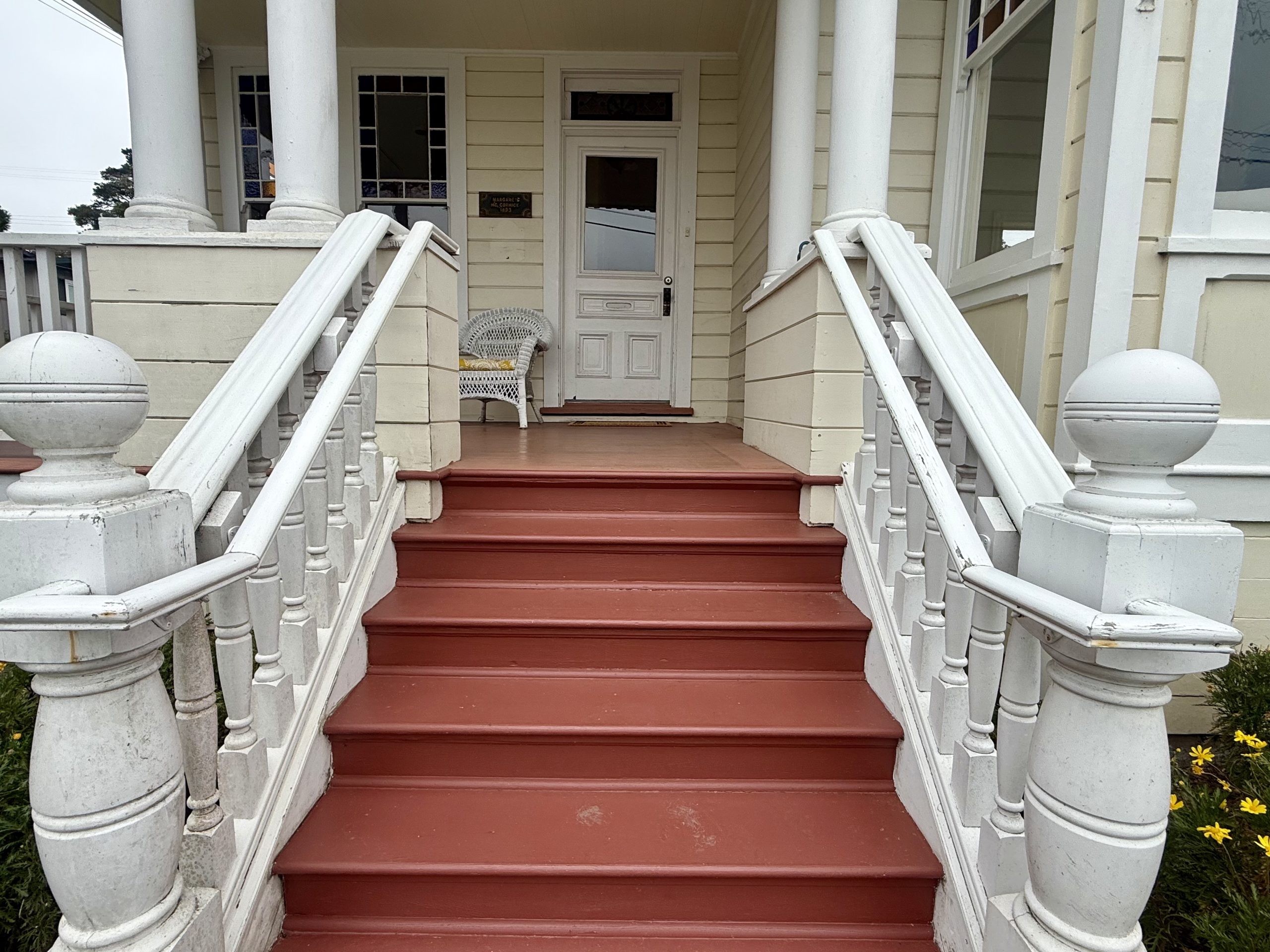 Up the stairs, the porch is perfectly designed for an afternoon of relaxing and people watching.