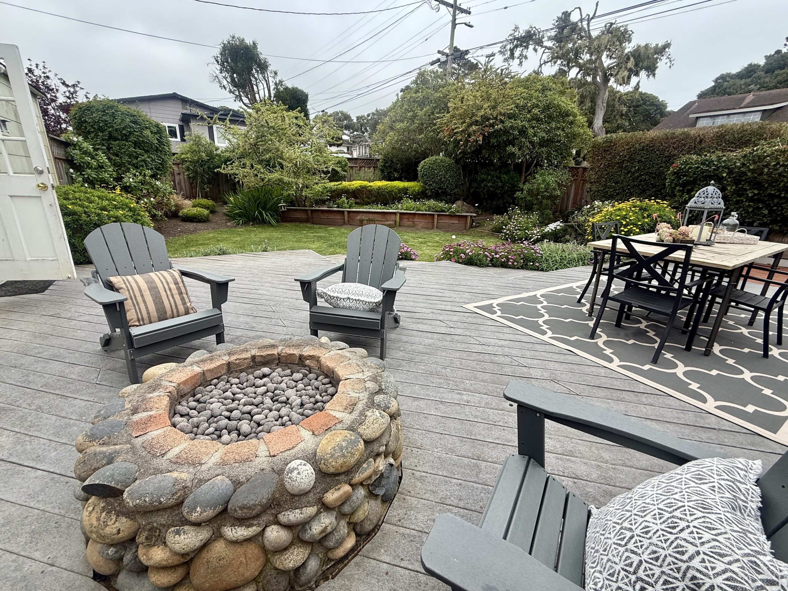 2. The fenced backyard: Built around several great stations (garden, dining table, fire pit, etc.), the yard providing a variety of entertaining options, with space for a crowd.