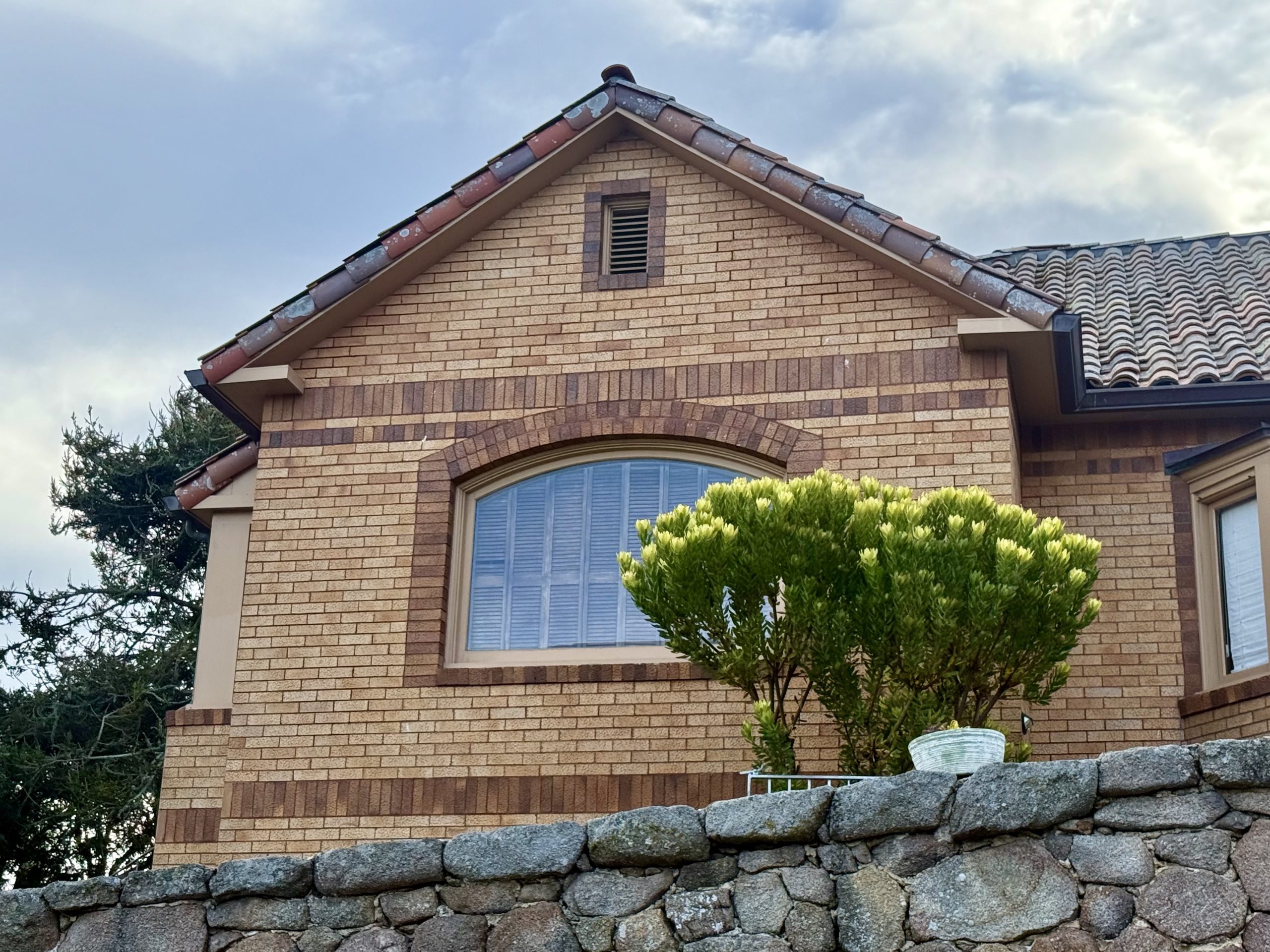 1. The original home: the symmetrical and polychrome brickwork, the tile roof, gorgeous picture windows, the grand staircase and the round arch entry at the top.