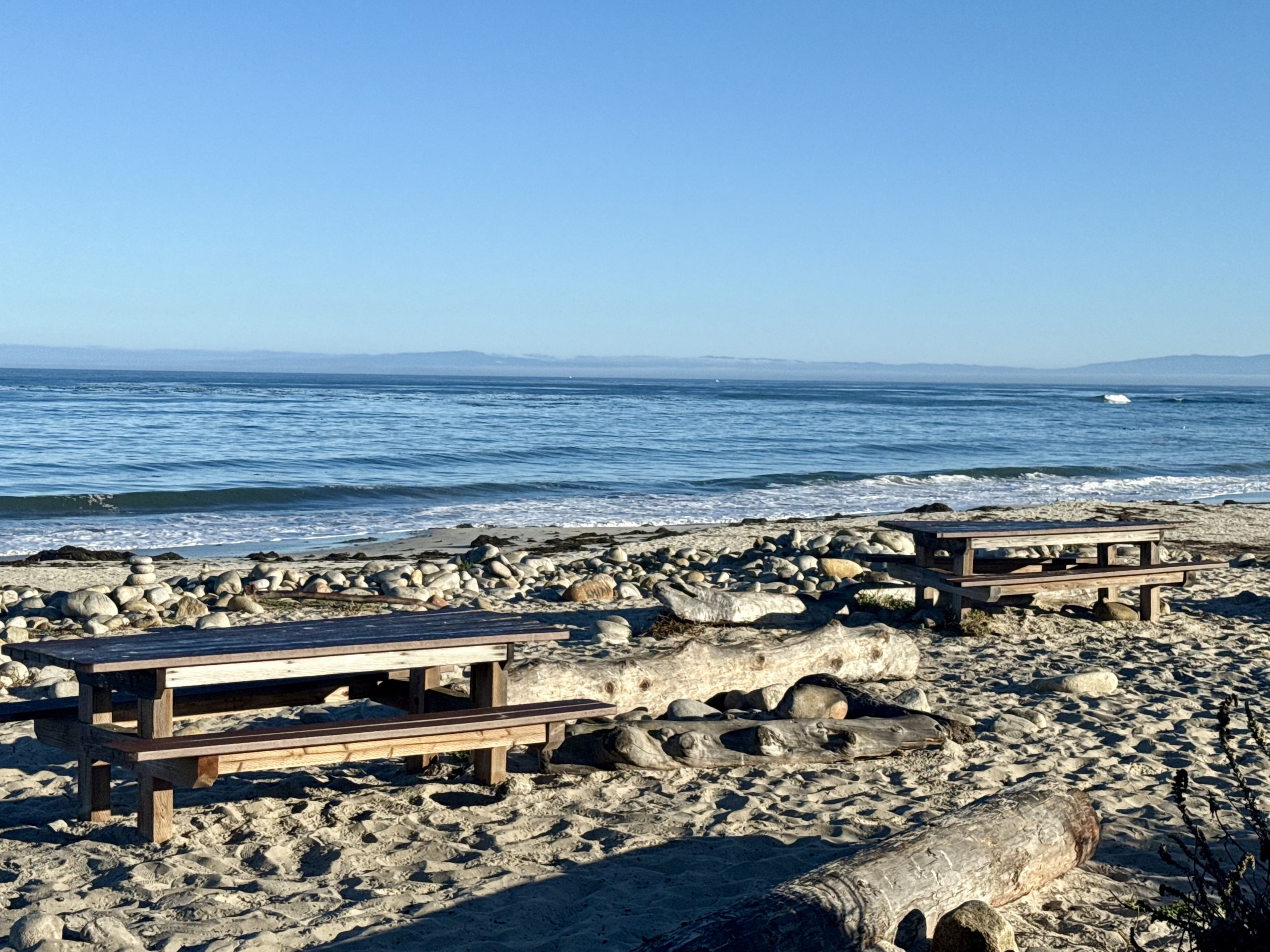When you reach the coast, turn right for Moss Beach at the parking lot. This is a large sandy beach framed by cobblestone rocks, picnic tables and a boardwalk.